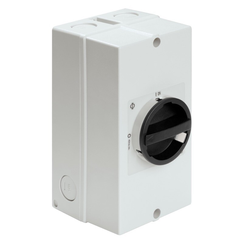 32A 3 Pole Enclosed Isolator; IP66/67; Polycarbonate Enclosure; 160H x 85W x 82mmD; Black/Grey Padlockable Handle