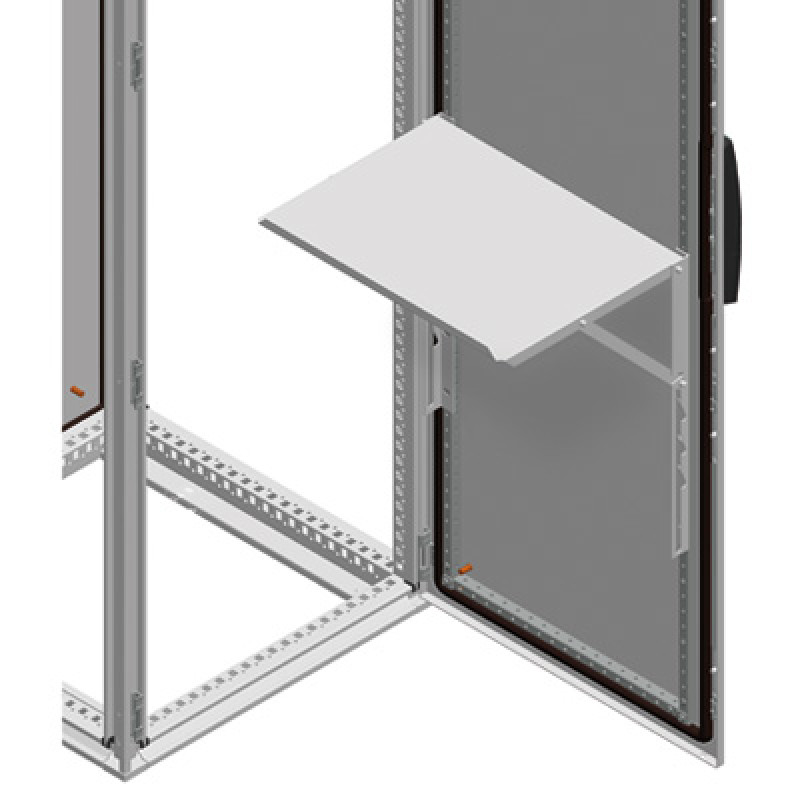 Adjustable horizontal support for laptop computer or similar. Generally installed on the reinforcement frame of the door but can also be fitted to wider doors using door cross rails.