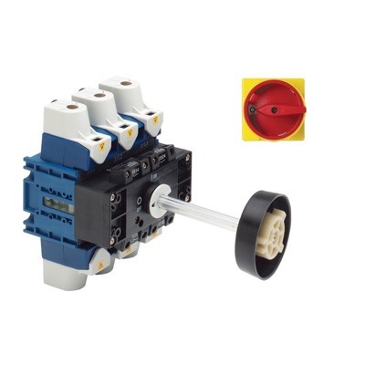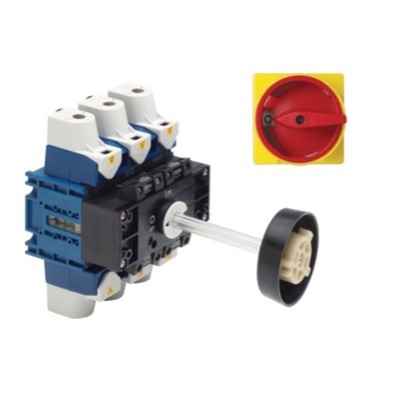 Kraus & Naimer KG 32A 3 Pole Isolator for Base or DIN Rail Mounting Switch Supplied with 150mm Metal Shaft & IP66/67 Red/Yellow Handle