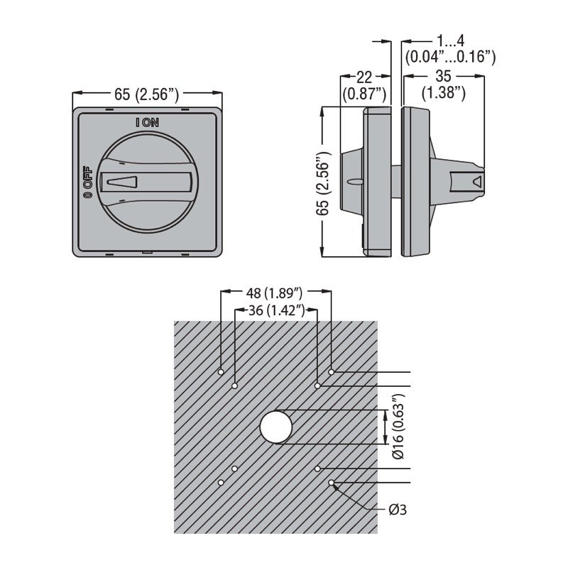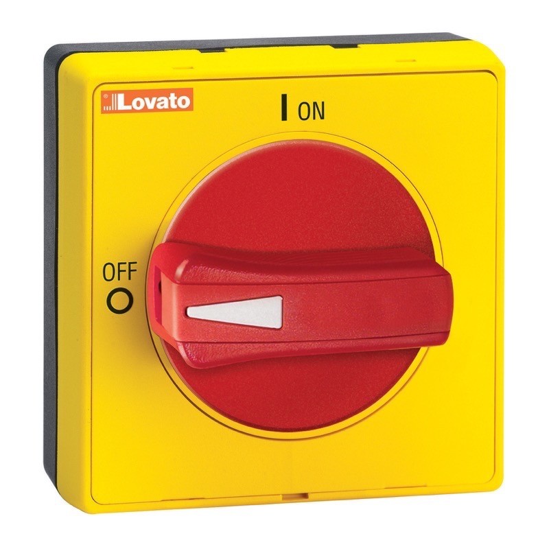 GAX62 - Lovato GA Padlockable Red/Yellow Isolator Handle Screw Fix 65 x 65mm