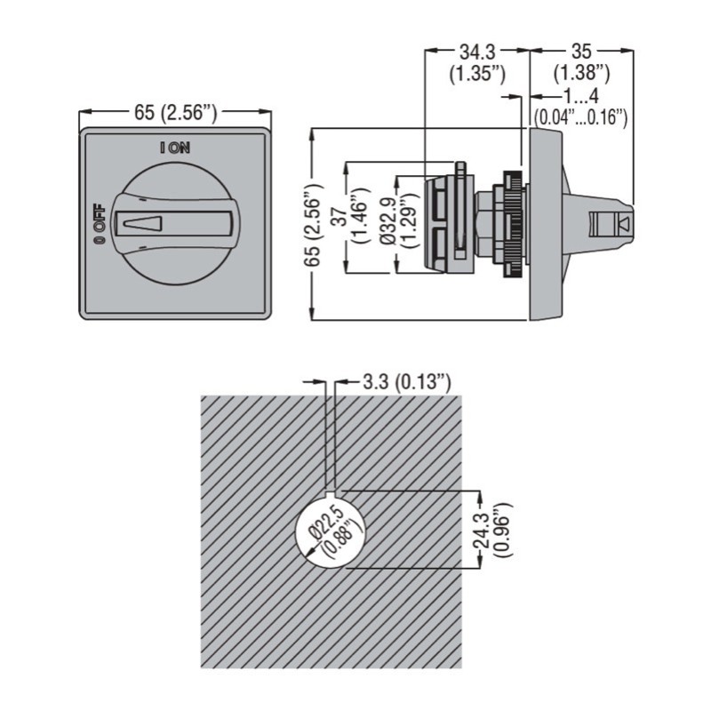 GAX63 - Lovato GA Padlockable Red/Yellow Isolator Handle Ring Fix 65 x 65mm