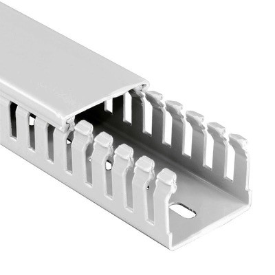 Betaduct PVC Cable Trunking is produced from a self-extinguishing PVC material. Open Slot in Grey RAL7030.