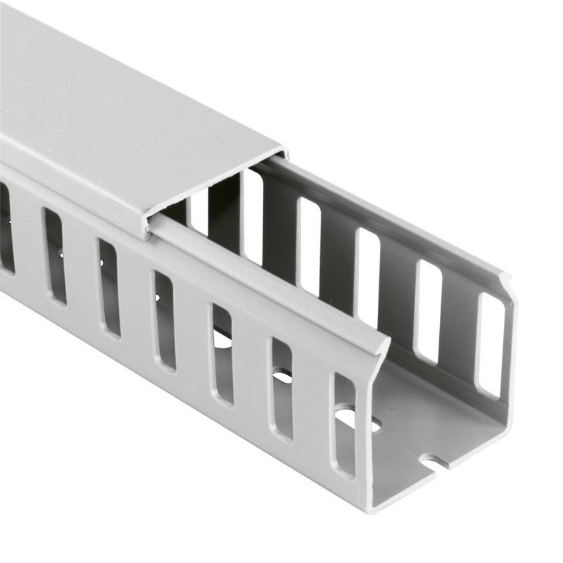Betaduct PVC Closed Slot Trunking; 25W x 37.5H; Grey RAL7030; Box of 24 Metres (12 x 2 Metre Lengths)