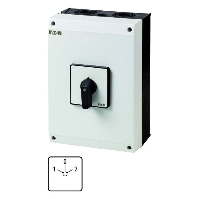 T5-3-8212/I5 - Eaton T5 3 Pole Changeover Switch with "O" 100A Surface Mounting Stay Put 55kW Black Thumb Grip Handle