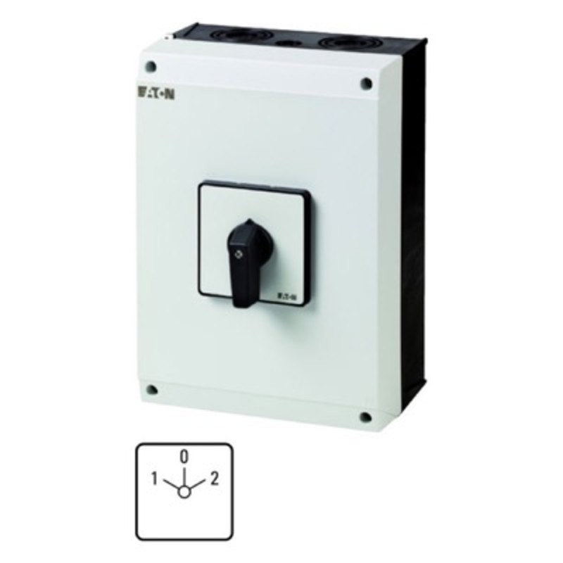 T5-4-8213/I5 - Eaton T5 4 Pole Changeover Switch with "O" 100A Surface Mounting Stay Put 55kW with Black Thumb Grip Handle
