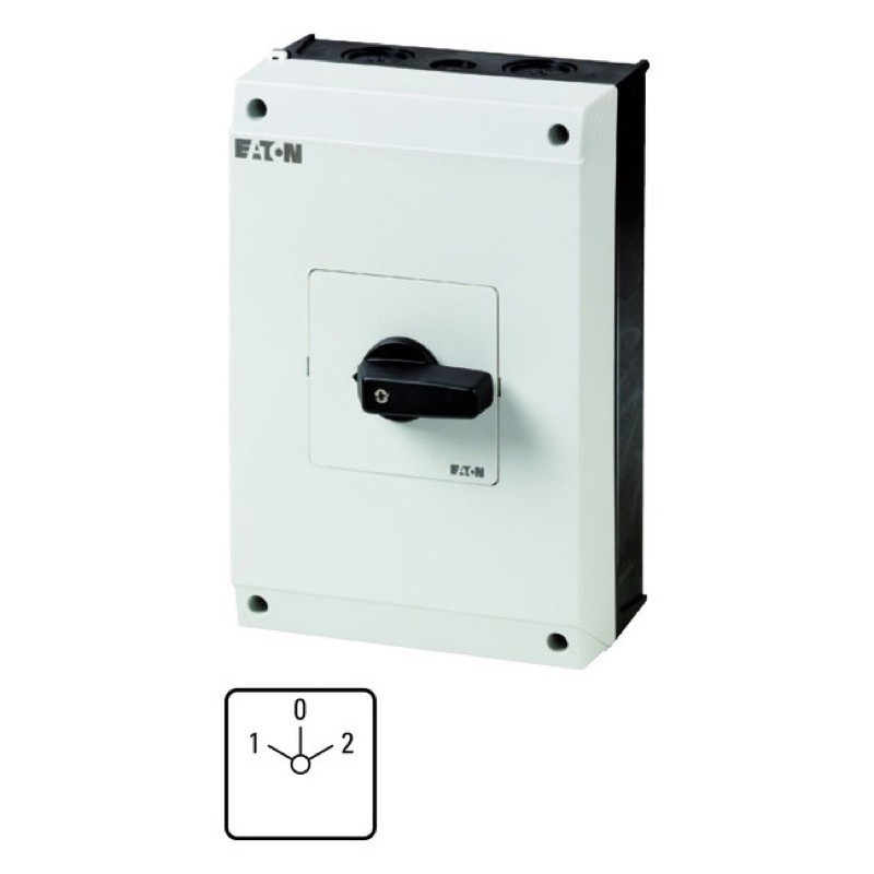 T5B-3-8212/I4 - Eaton T5B 3 Pole Changeover Switch with "O" 63A Surface Mounting Stay Put 30kW with Black Thumb Grip Handle