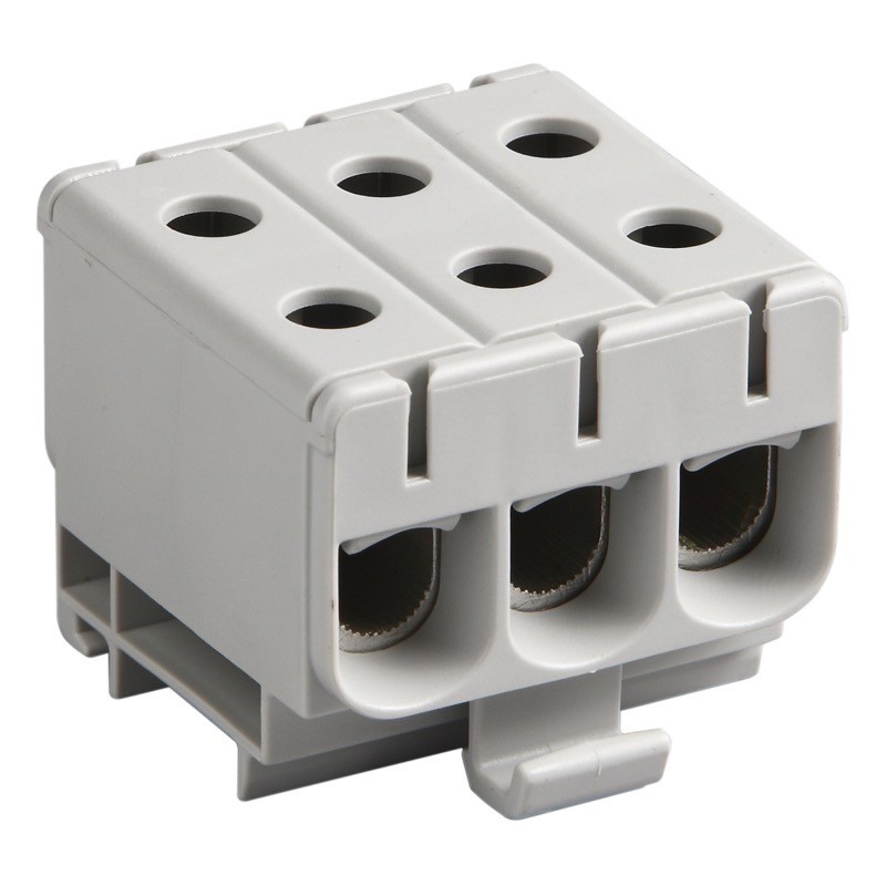 KE61.03 - Ensto Clampo Pro 50mm Grey DIN Rail Terminal for TS35 Rail or Base Mounting 3 Pole Feed Through Suitable for Copper & Aluminium Cable
