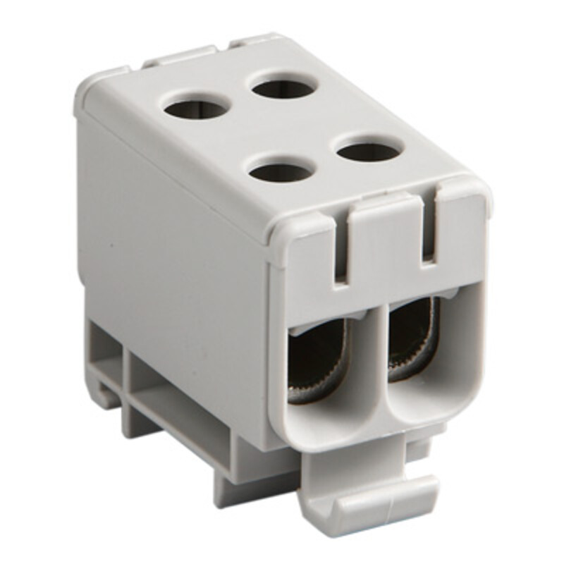 KE66 - Ensto Clampo Pro 50mm Grey DIN Rail Terminal for TS35 Rail or Base Mounting Four linked Connections Suitable for Copper & Aluminium Cable