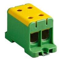 KE67.3 - Ensto Clampo Pro 95mm Green/Yellow DIN Rail Terminal for TS35 Rail or Base Mounting Four linked Connections for Copper & Aluminium Cable