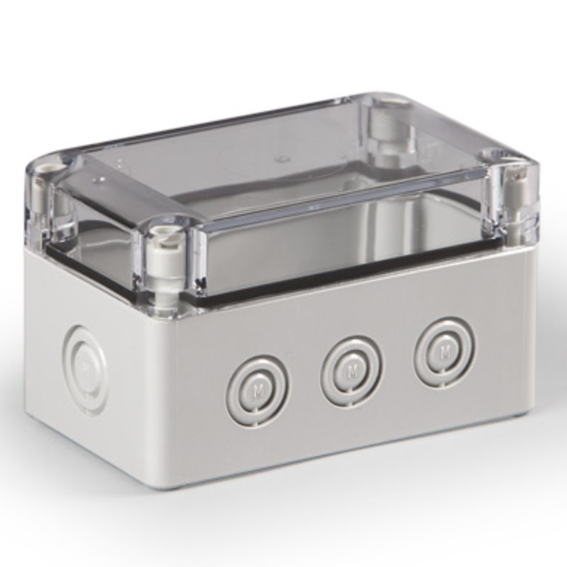 Cubo S Polycarbonate 75 x 125 x 75mmD Enclosure; Clear Lid; 50mm Base, 25mm Lid; IP66/67; Metric Knock-Outs