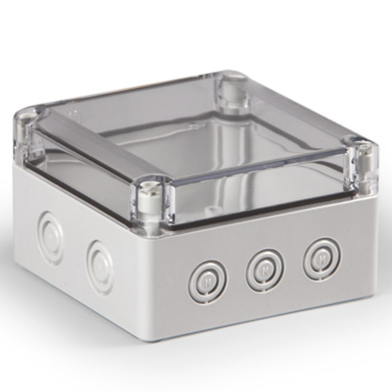 Cubo S Polycarbonate 125 x 125 x 75mmD Enclosure; Clear Lid; 50mm Base, 25mm Lid; IP66/67; Metric Knock-Outs