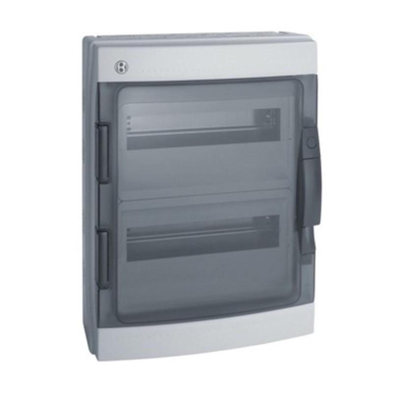 PABLO 24 Module Distribution Enclosure; 2 Rows; 12 Modules; IP65; Base: RAL7035 Door: Transparent Grey; 420H x 314W x 143mmD; Not Supplied with Terminal Blocks; Plain Sided; B06525