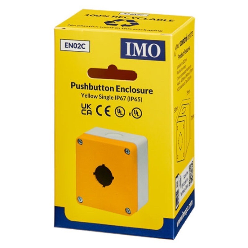 EN02C - IMO Single Pushbutton Enclosure IP65 Rated Protection, Yellow Lid, for Use with 22.5mm Pushbutton