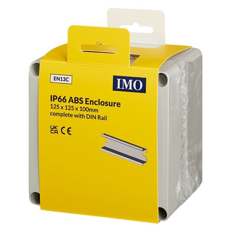 EN13C - IMO IP66 ABS Enclosure with Grey Lid 125 x 125 x 100mm Complete with DIN Rail