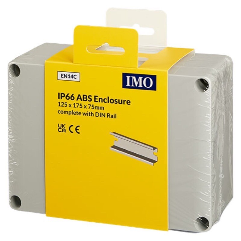 EN14C - IMO IP66 ABS Enclosure with Grey Lid 125 x 175 x 75mm Complete with DIN Rail