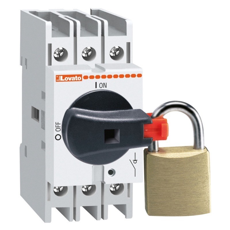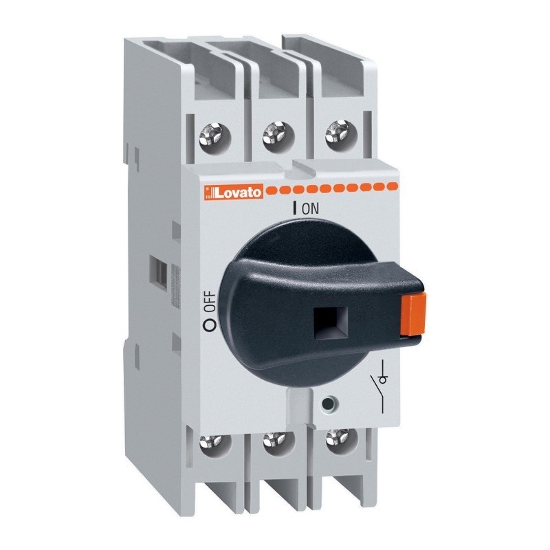 GA025A - Lovato GA 3 Pole 25A Isolator for Base Mounting Can also be used as an internal switch Black Handle