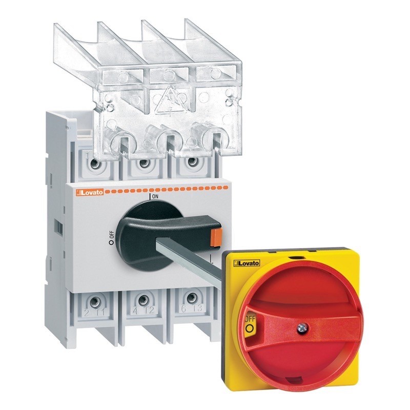 GAKIT160 - Lovato GA 3 Pole 160A Isolator Kit Supplied with Door Interlocked Padlockable Handle 200mm Long Metal Shaft & Single Shroud