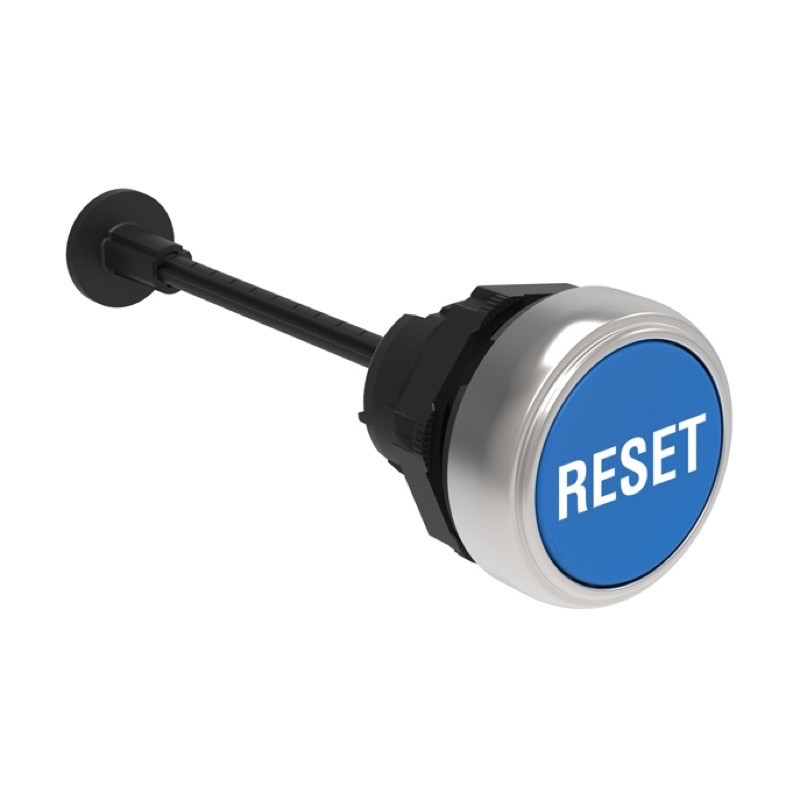 Platinum Blue Mechanical RESET button; Spring Return (Momentary); 22.5mm; Adjustable shaft length up to 150mm
