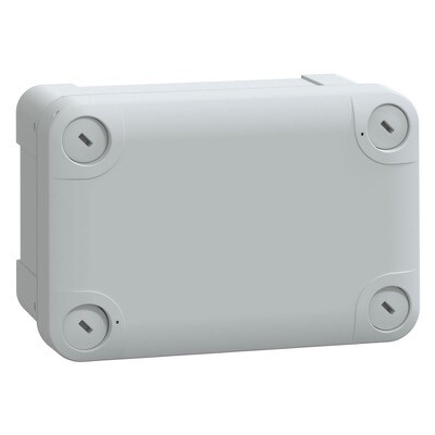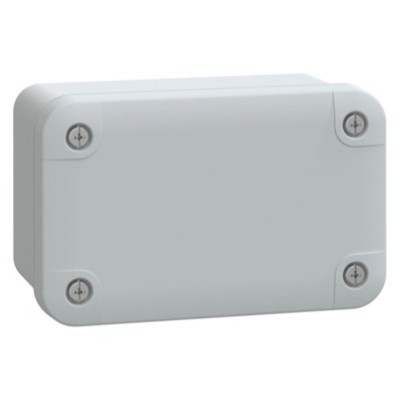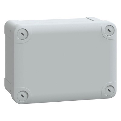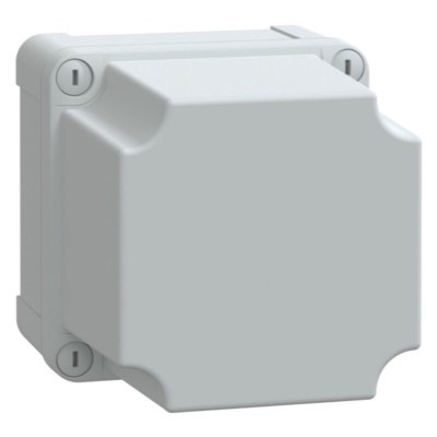 Schneider Electric PanelSeT (formerly Thalassa) TBS are ABS enclosures available in RAL7035. They have ingress protection IP66 and impact protection IK07. These feature a plain screw-down lid. Sizes range from 74 x 74 x 54 to 341 x 291 x 168mm.
