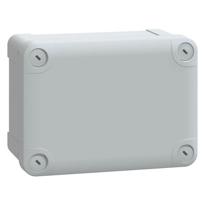 Schneider Electric Thalassa TBP are polycarbonate enclosures with plain screw-down lids. Available in RAL7035, they have ingress protection IP66 and impact protection IK08. Sizes range from 116 x 116 x 62 to 341 x 291 x 168mm.