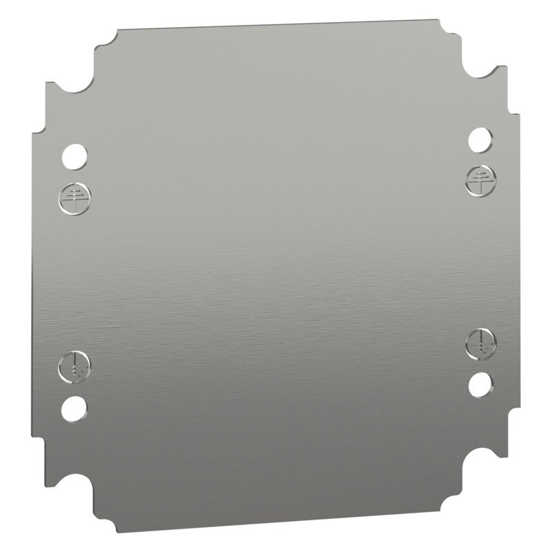 NSYMM22 - Schneider PanelSeT NSYMM Internal Mounting Plate for 200H x 200mmW Enclosure Plain Galvanised Steel Plate Dimensions 150H x 150W x 2mmD