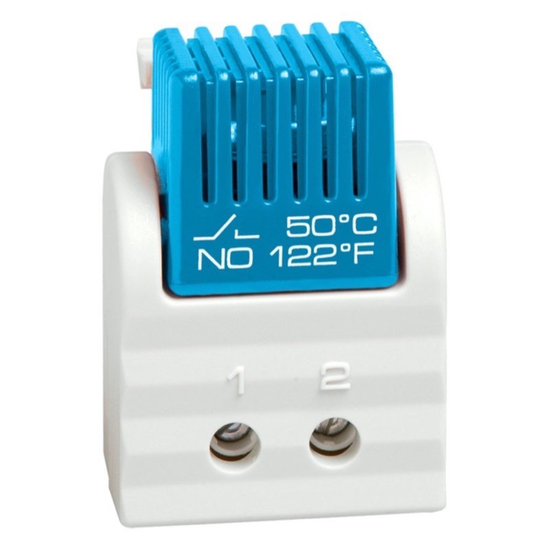 Tamper-proof thermostat for regulating filter fans, heat exchangers, cooling devices or switching signal devices when temperature limit has been exceeded In-built DIN Rail clip Dimensions: 47mmH x 33mmW x 33mmD