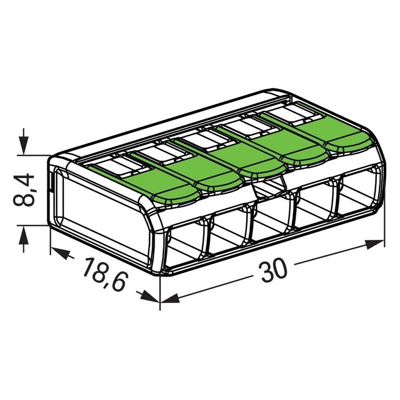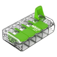 WAGO Green Range 5 Conductor Splicing Connector; Lever Lock; Suitable for Cable up to 4mm2; 32A; Pack of 25 Pieces