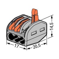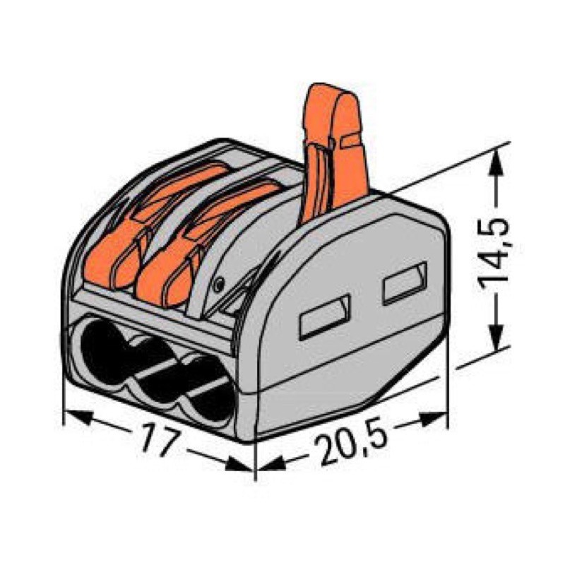 222-413 - WAGO 222 Series 3 Conductor Splicing Connector with Lever Lock Suitable for cable up to 4mm2 32A Pack of 50 Pieces