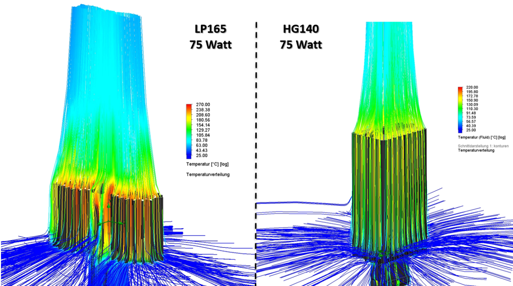 The other exciting thing about the product tests came from the thermal imaging, which showed the LP 165 loop heater gets hotter and uses the chimney effect to better advantage than the HG 140. This means the heat rises more efficiently, leading to smoother heat distribution. Through this advantage, the loop heater is able to reduce energy usage by one third, saving electricity, money and the environment.
