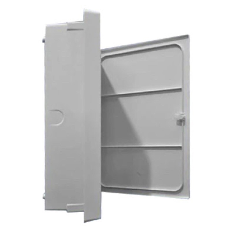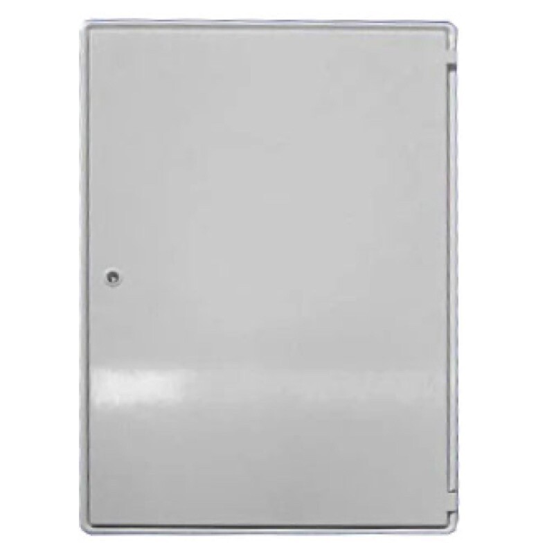3-phase Recessed GRP Electricity Meter Box; 770H x 550W x 210mmD; Weather Resistant; Specifically Designed to House a 3-phase Meter; Meter Box Key Included; White; Fitted Baseboard; Brickwork Opening: 700H x 475W x 145mmD