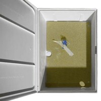 3-phase Surface Mount GRP Electricity Meter Box; 750H x 520W x 210mmD; Weather Resistant; Specifically Designed to House a 3-phase Meter; Meter Box KeyIncluded; White; Fitted Baseboard