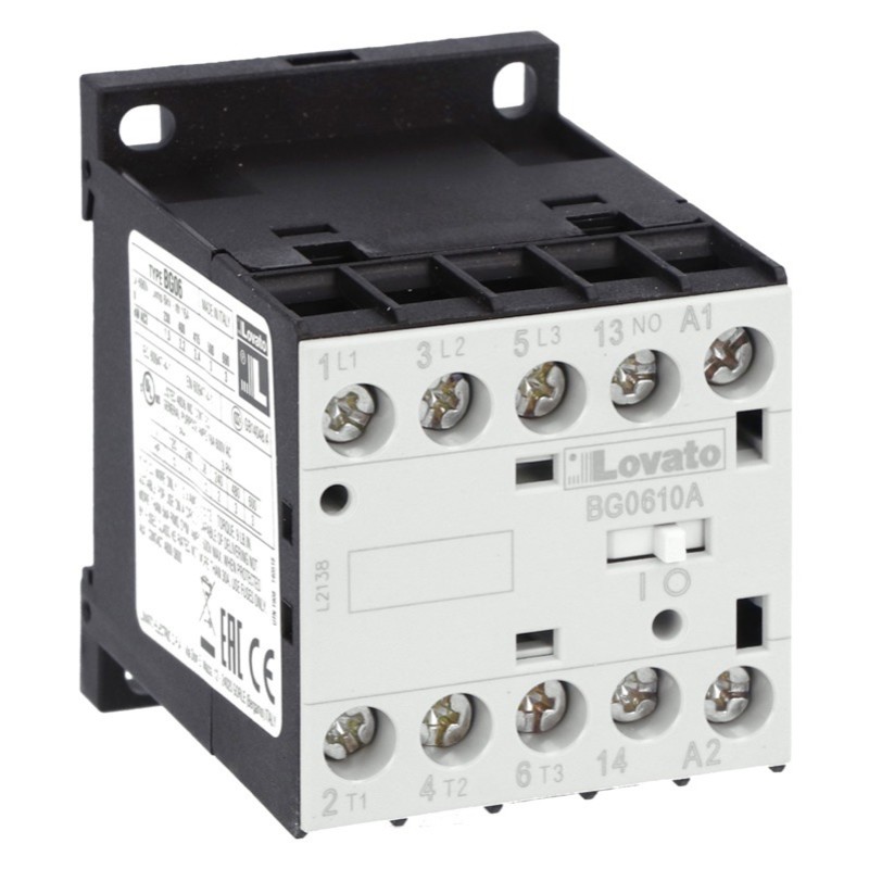 Lovato BG Series Mini Contactor; 3 Pole 1 x N/O Auxiliary; 110VAC Coil; 6A AC3 2.2kW