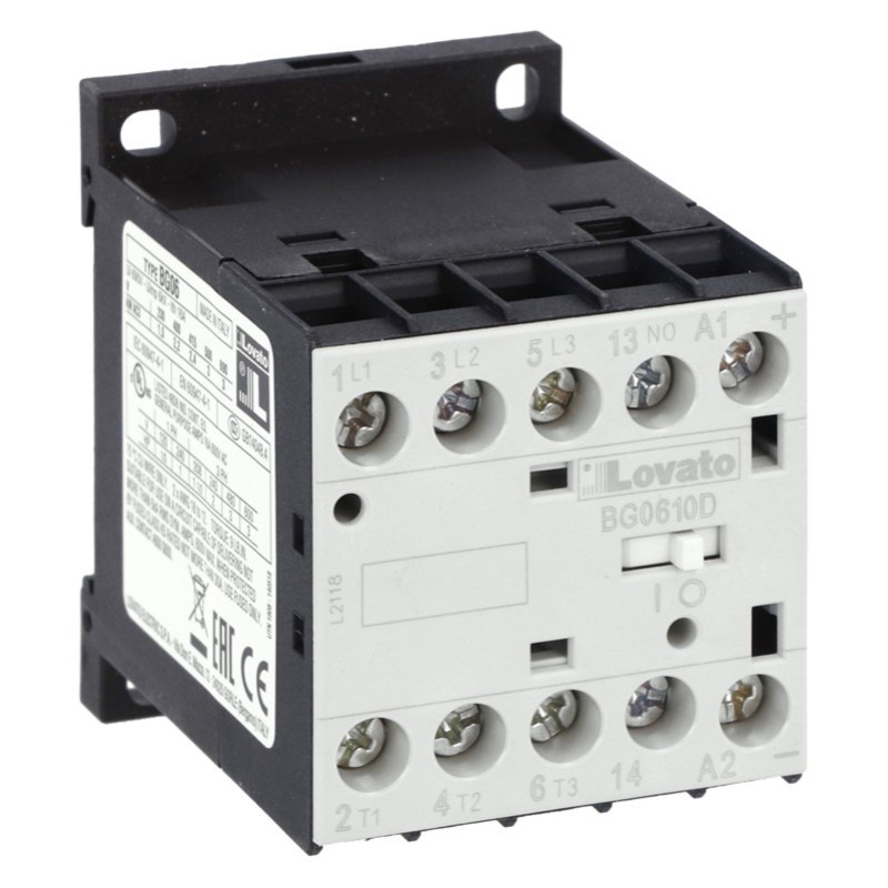 Lovato BG Series Mini Contactor; 3 Pole 1 x N/O Auxiliary; 24VDC Coil; 6A AC3 2.2kW