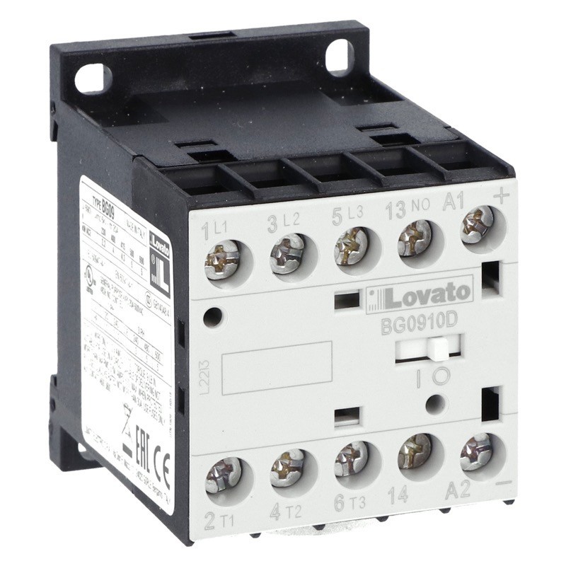 Lovato BG Series Mini Contactor; 3 Pole 1 x N/O Auxiliary; 24VDC Coil; 9A AC3 4kW