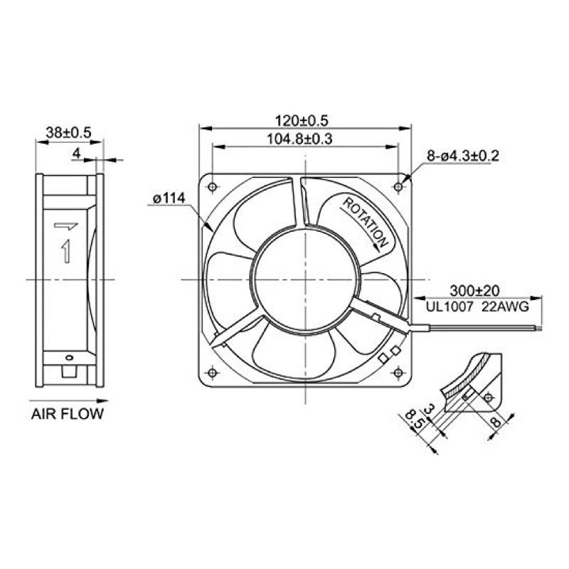 120 x 120 x 38mm Aluminium Fan 110VAC with terminal connectors (AA1281UB-AT)
