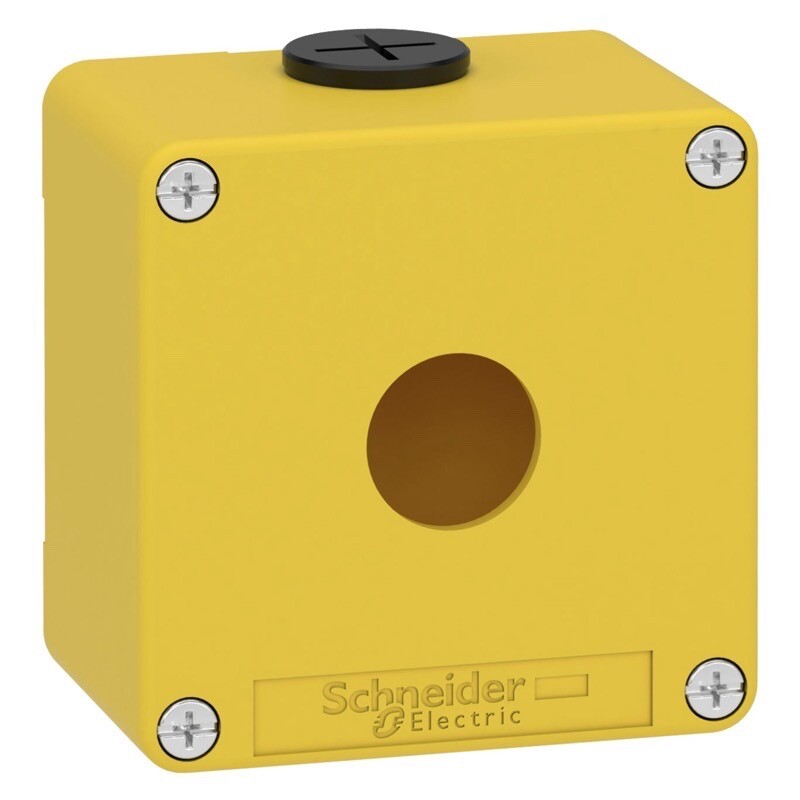 XAPK1201 - Schneider Harmony XAPK Empty Yellow 1 Hole Control Station Enclosure Die-cast Metal 80H x 80W x 52mmD