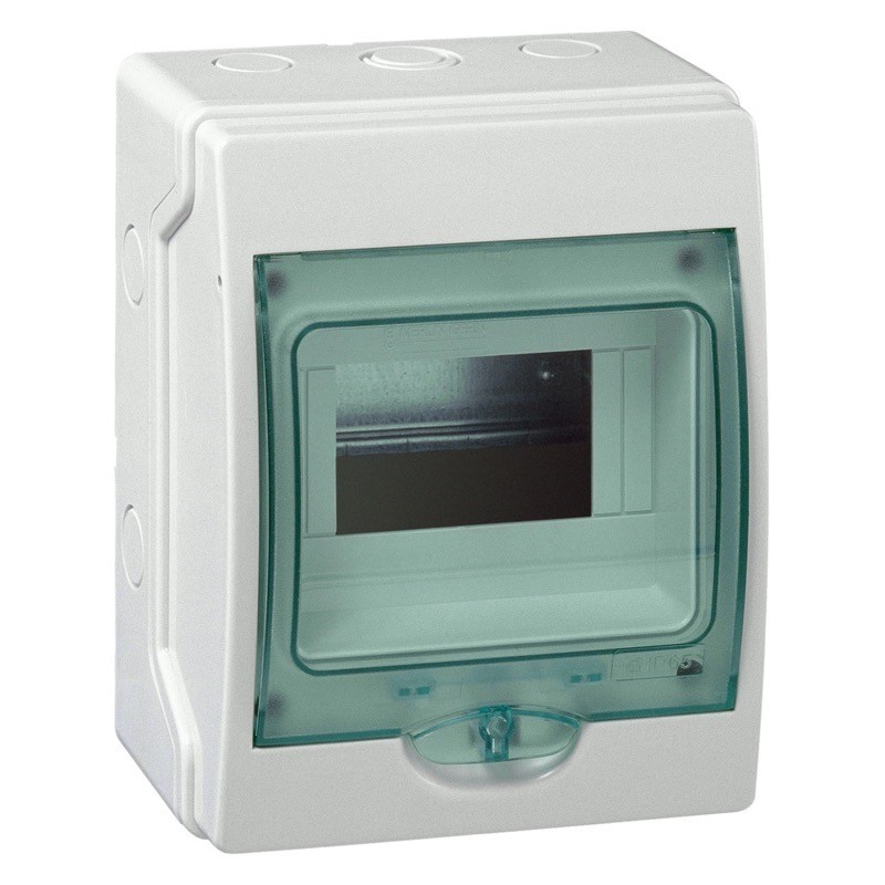 KAEDRA 6 Module Distribution Enclosure; 1 Row; 6 Modules; IP65; Base: RAL7035 Door: Transparent Green; 200H x 159W x 112mmD; Not Supplied with Terminal Blocks