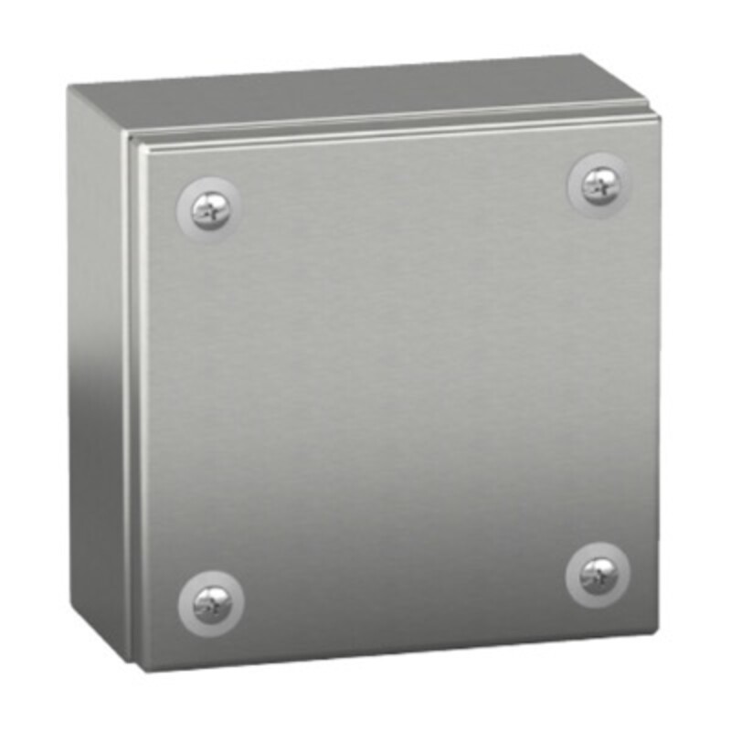NSYSBX15158 - Schneider PanelSeT SBX Stainless Steel 304L 150H x 150W x 80mmD Terminal Box Screw Down Lid IP66 Internal DIN Rail Supports Included