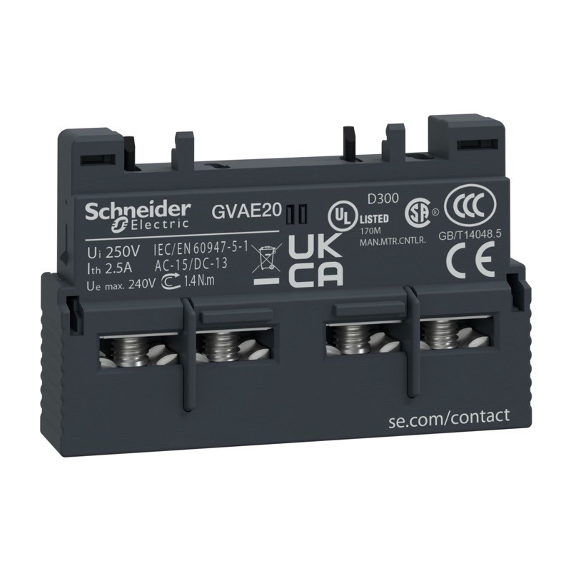 GVAE20 - Schneider TeSys GV Auxiliary Contact Block 2 x N/O Contacts Front Mounting
