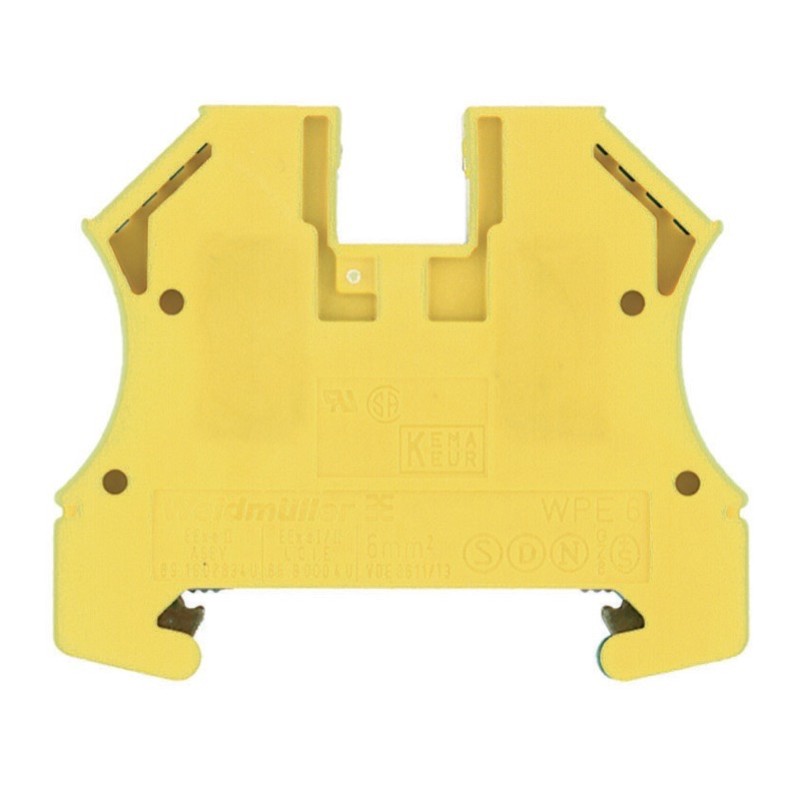 1010100000 - Weidmuller W Series 4mm Earth DIN Rail Terminal for TS35 Rail Green/Yellow WPE4