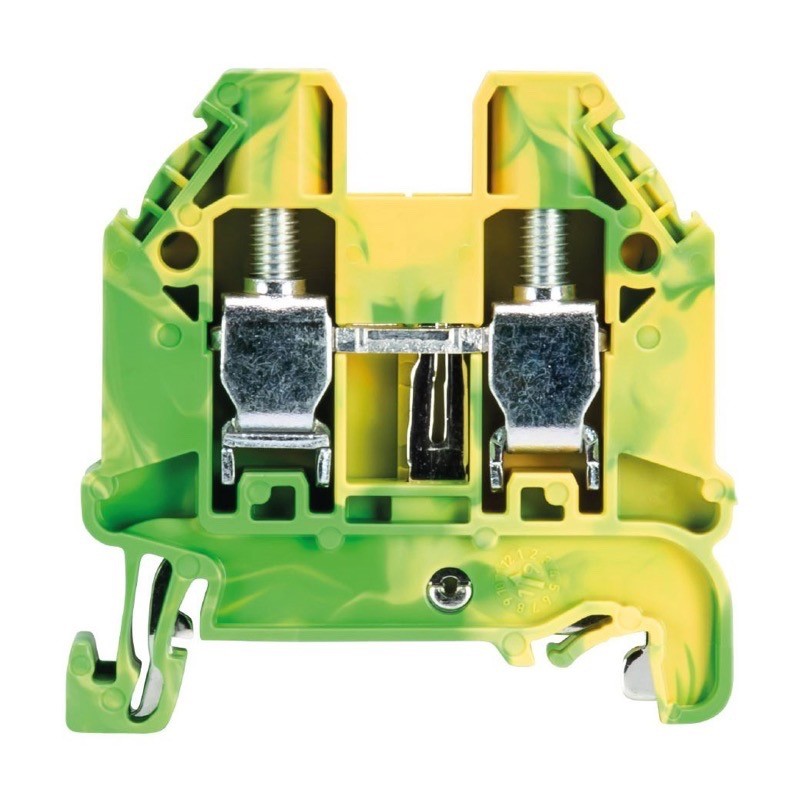 6mm Earth DIN Rail Terminal for TS35 Rail; Single Feed Through Green/Yellow; WT6 PE