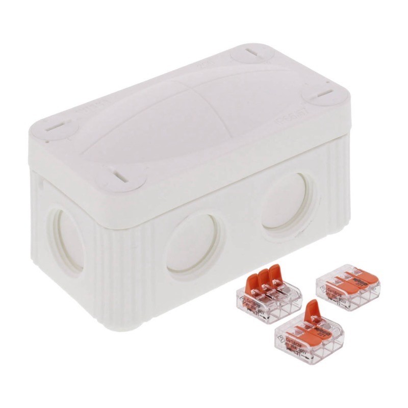 COMBI 206 WH / 3-221-413 Polypropylene 85 x 49 x 51mmD Enclosure; White Lid; IP66; RAL9001; with 3x WAGO 221-413 Connectors suitable for 4mm2 Cable (32A)